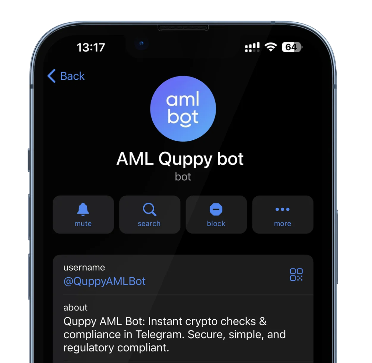 Попробуйте AML Quppy Bot с мгновенными проверками — быстрый способ оценить риски и защитить свои активы.